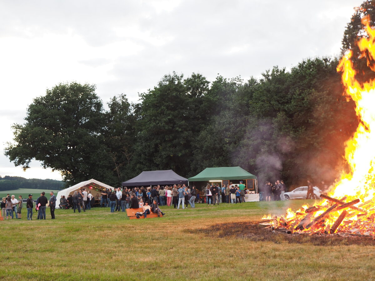 Am Freitagabend konnte man die imposant und angenehme Johannisfeuerwärme im Freien mit einem Getränk und Bratwürstl genießen. Vom Dorfkreuz in Woppenrieth aus waren zuvor die jungen Christen der Landjugend Waldthurn mit Fackeln zum „Kannesfeuerplatz“ marschiert.