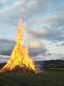 Aufgeschichtet waren wieder Kleinholz, Reisig, stärkere Äste und sonstiges brennbares Material. Von Woppenrieth aus sendeten die KLJB`ler weit sichtbar einen hellen Feuerschein und auch manch heftiges Rauchzeichen in das Waldthurner Land. Pfarrer Norbert Götz segnete das Feuer. Für Sicherheit sorgte die Waldthurner Feuerwehr.